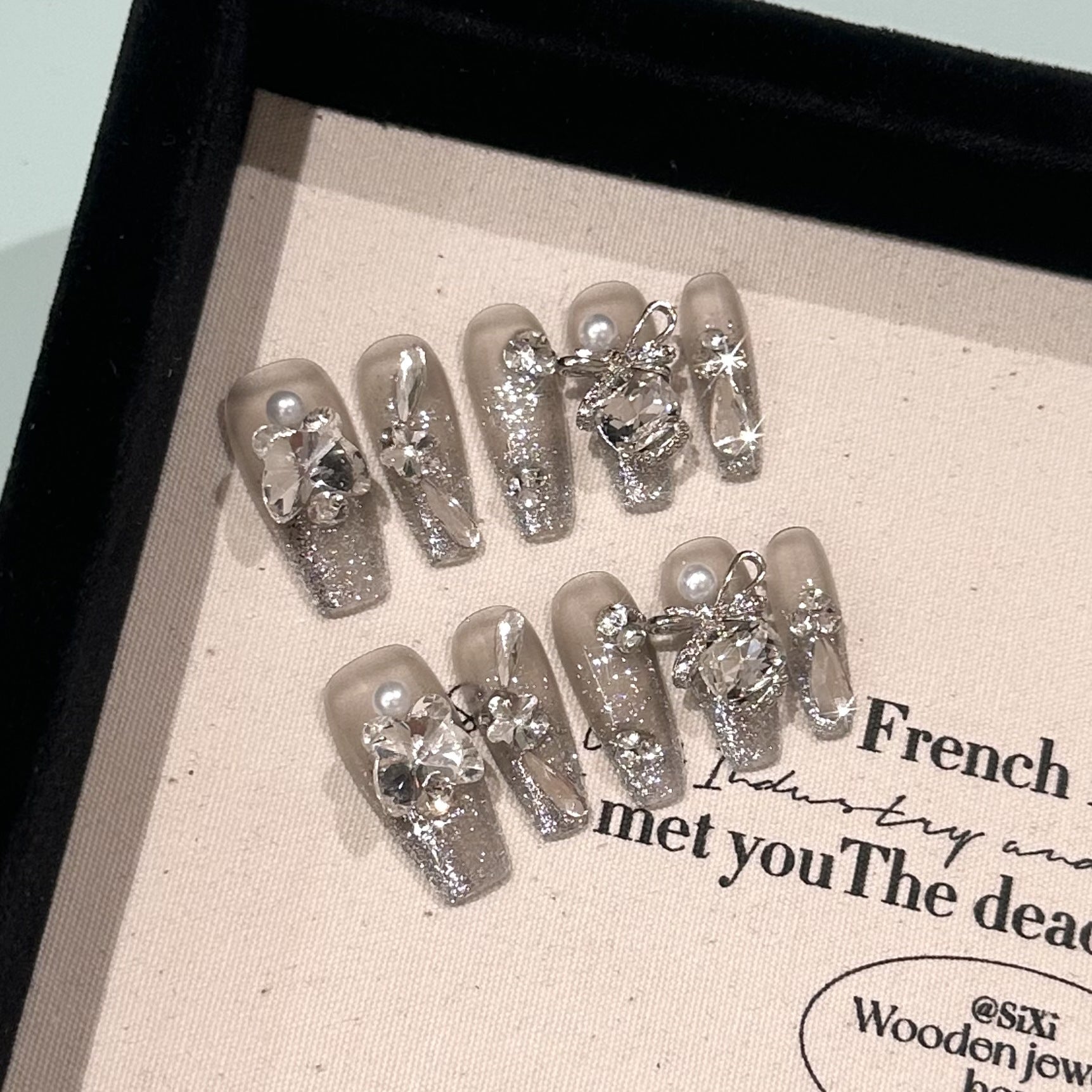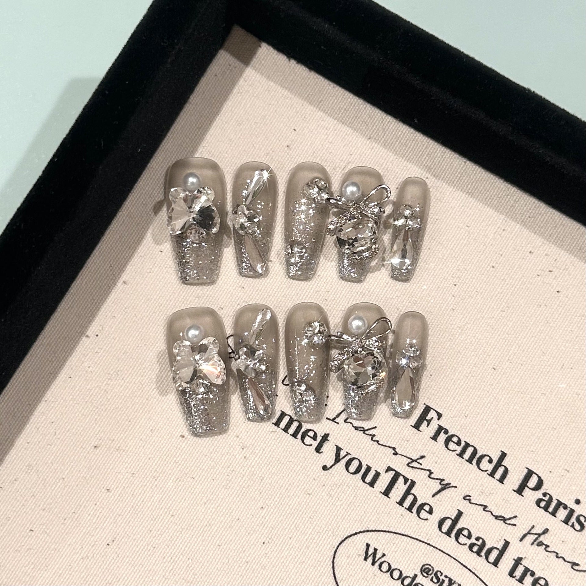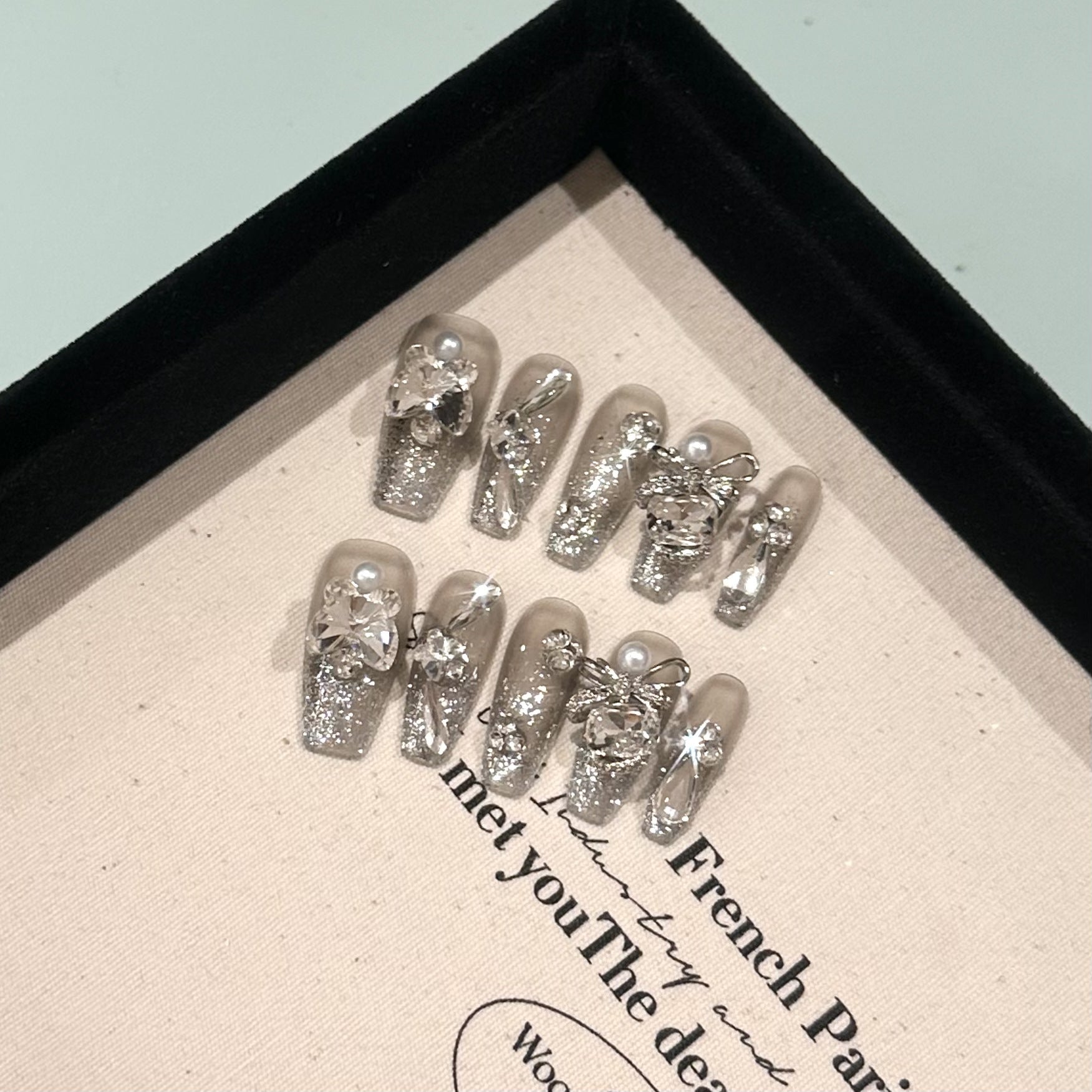Galaxy Reverie:On nails, Galaxy Reverie unfolds.Glitter like stars, pearls like moons,A cosmic dream, a delicate romance.