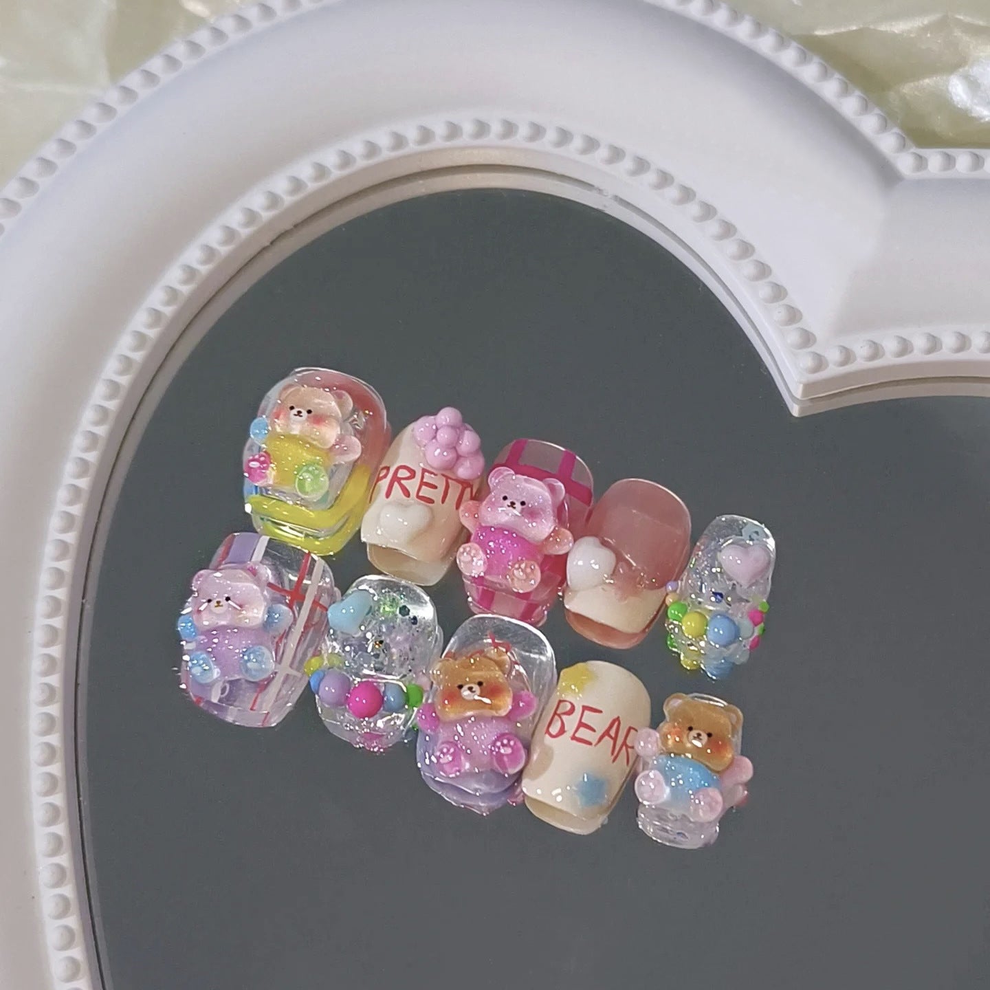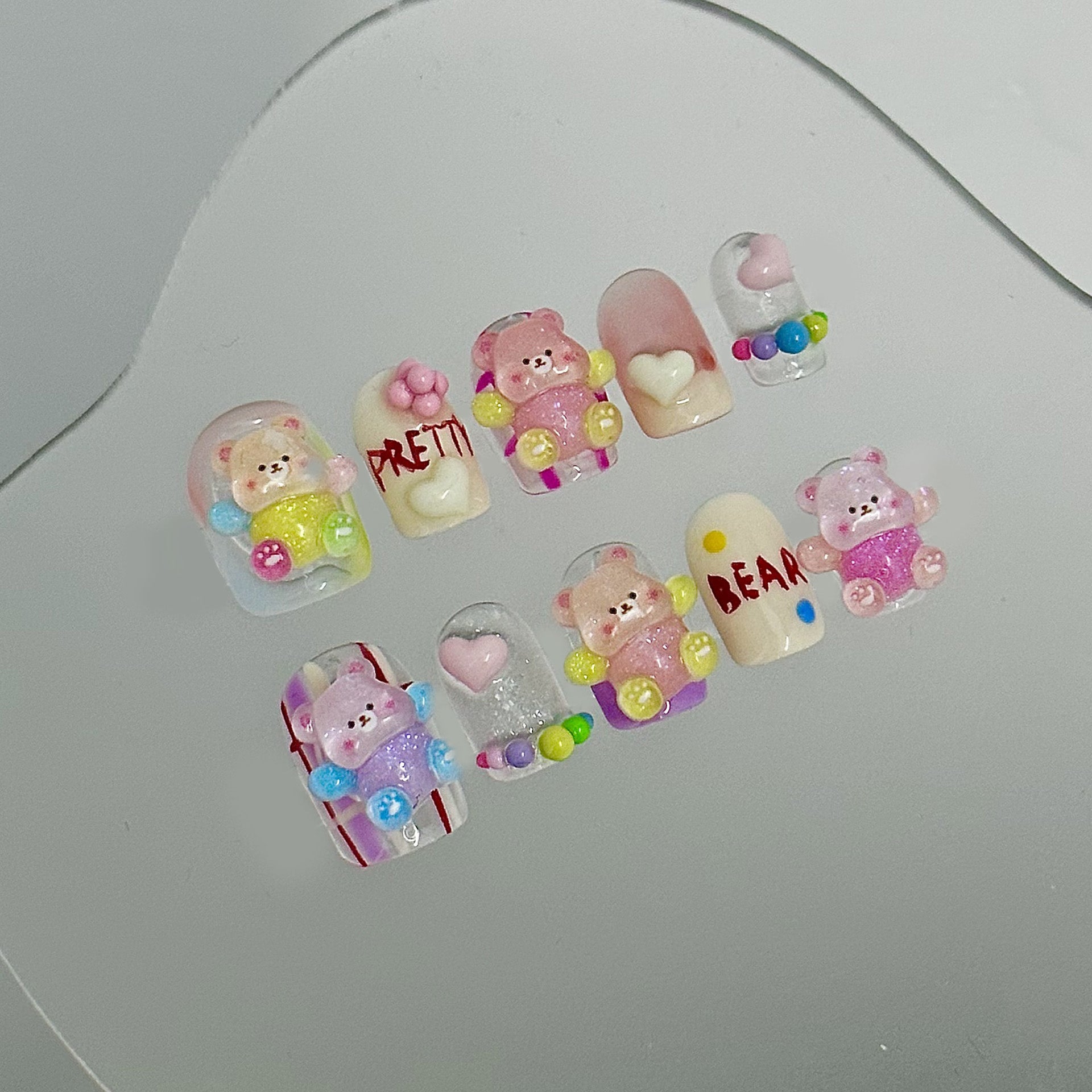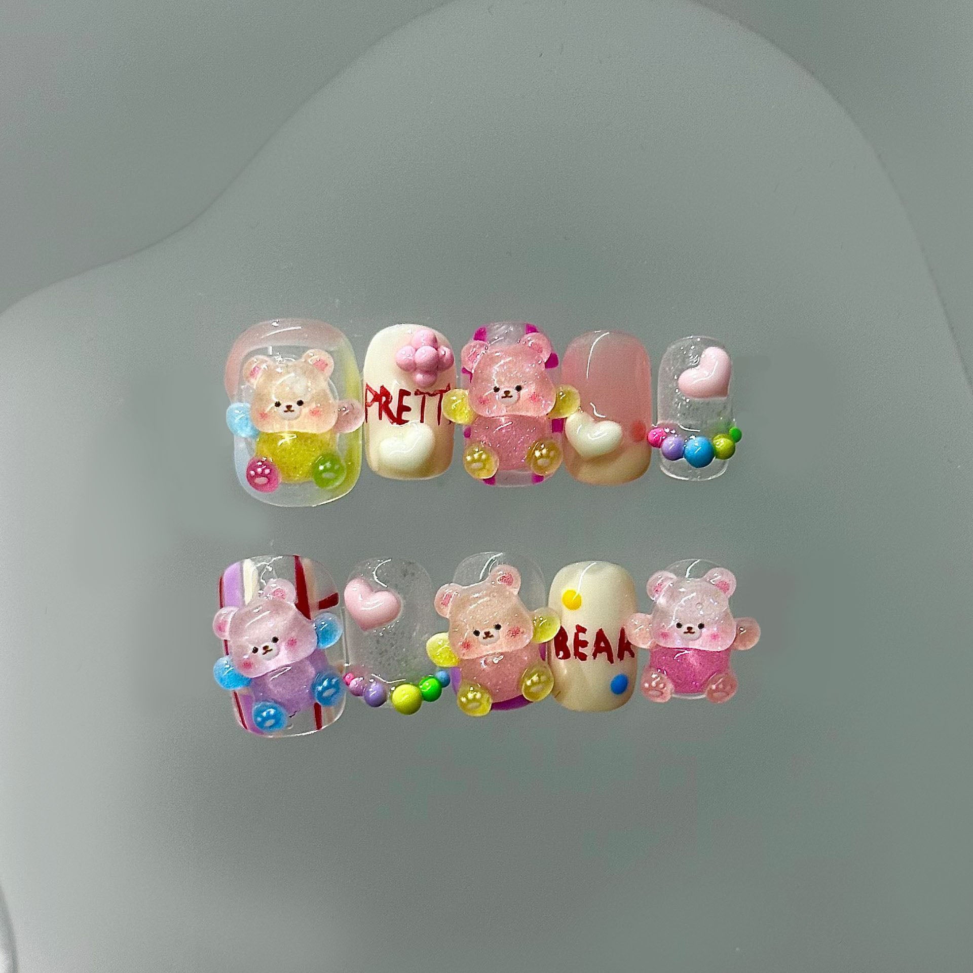 Dive into the dreamy world of BubbleBearMagic, where buttery hues and soft pinks melt into a canvas of joy. Five jelly bear come alive, dancing among rainbow bubbles, each detail a whisper of playful enchantment. Let your fingertips tell a story of whimsy and wonder.