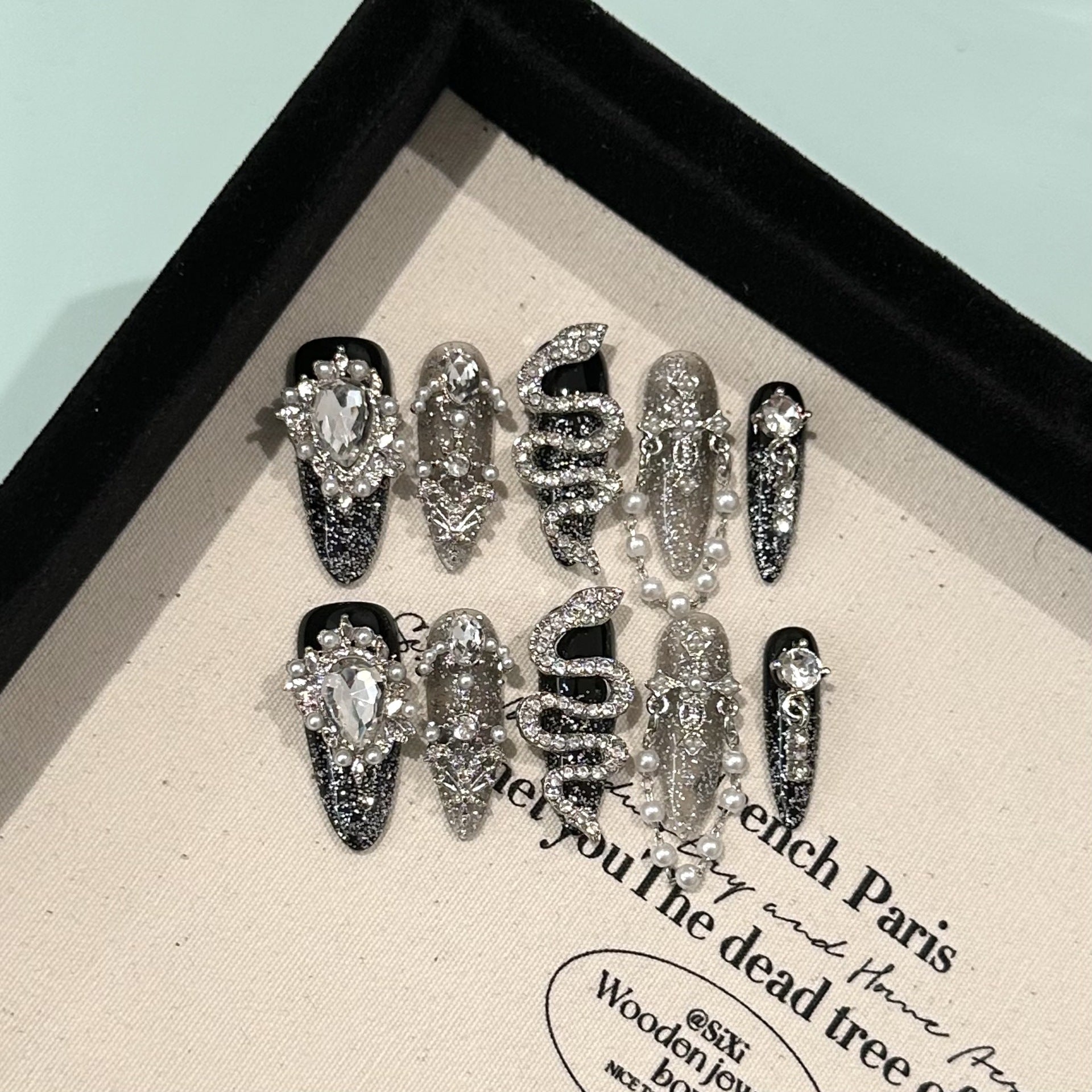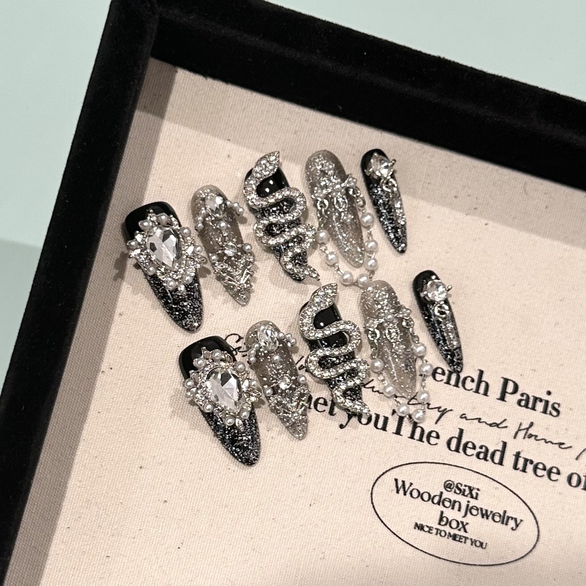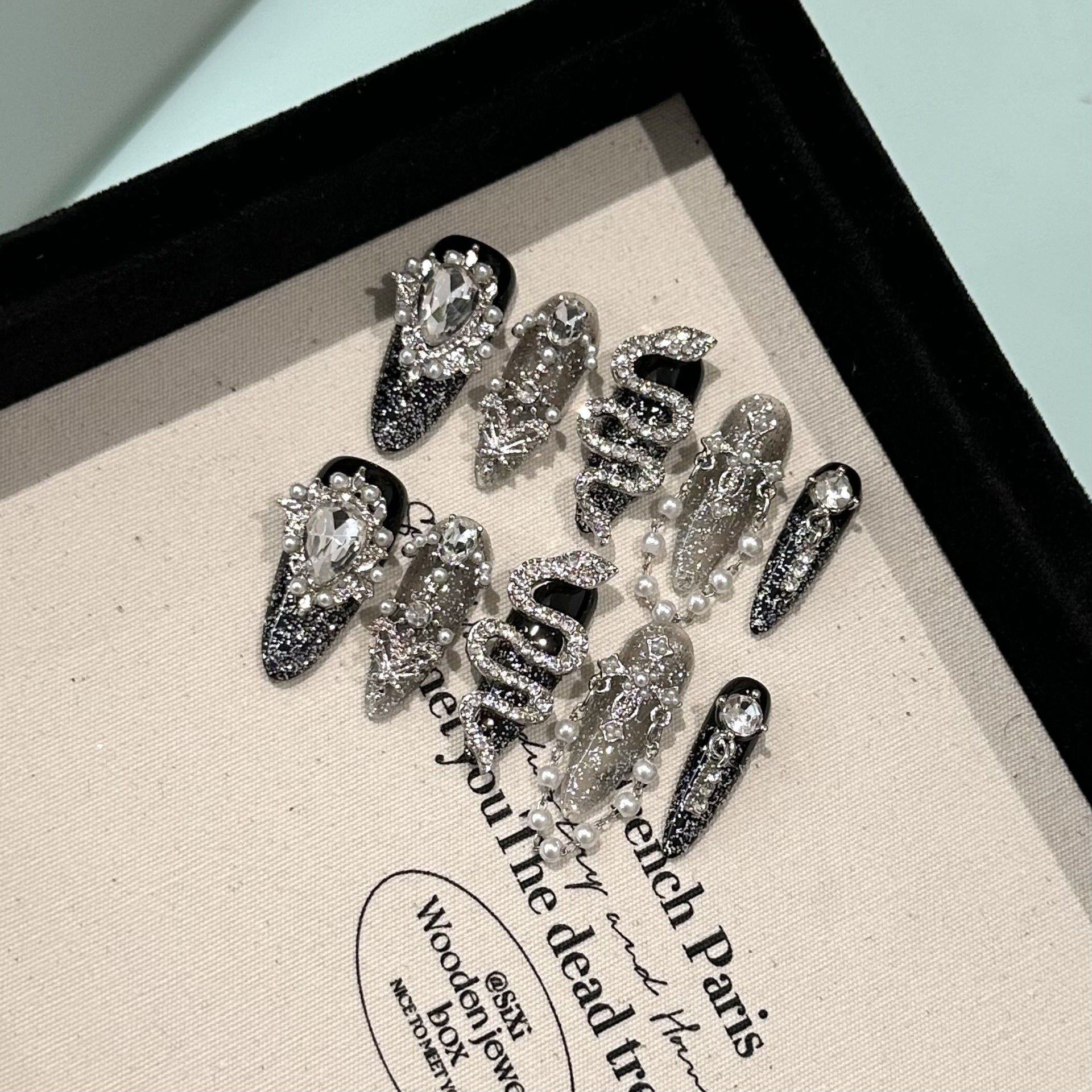 Whispers of the Serpent glide across your fingertips, a cascade of pearls and diamonds entwined in summer's shimmer. Cold elegance meets mystic allure, each detail a spell of timeless beauty.